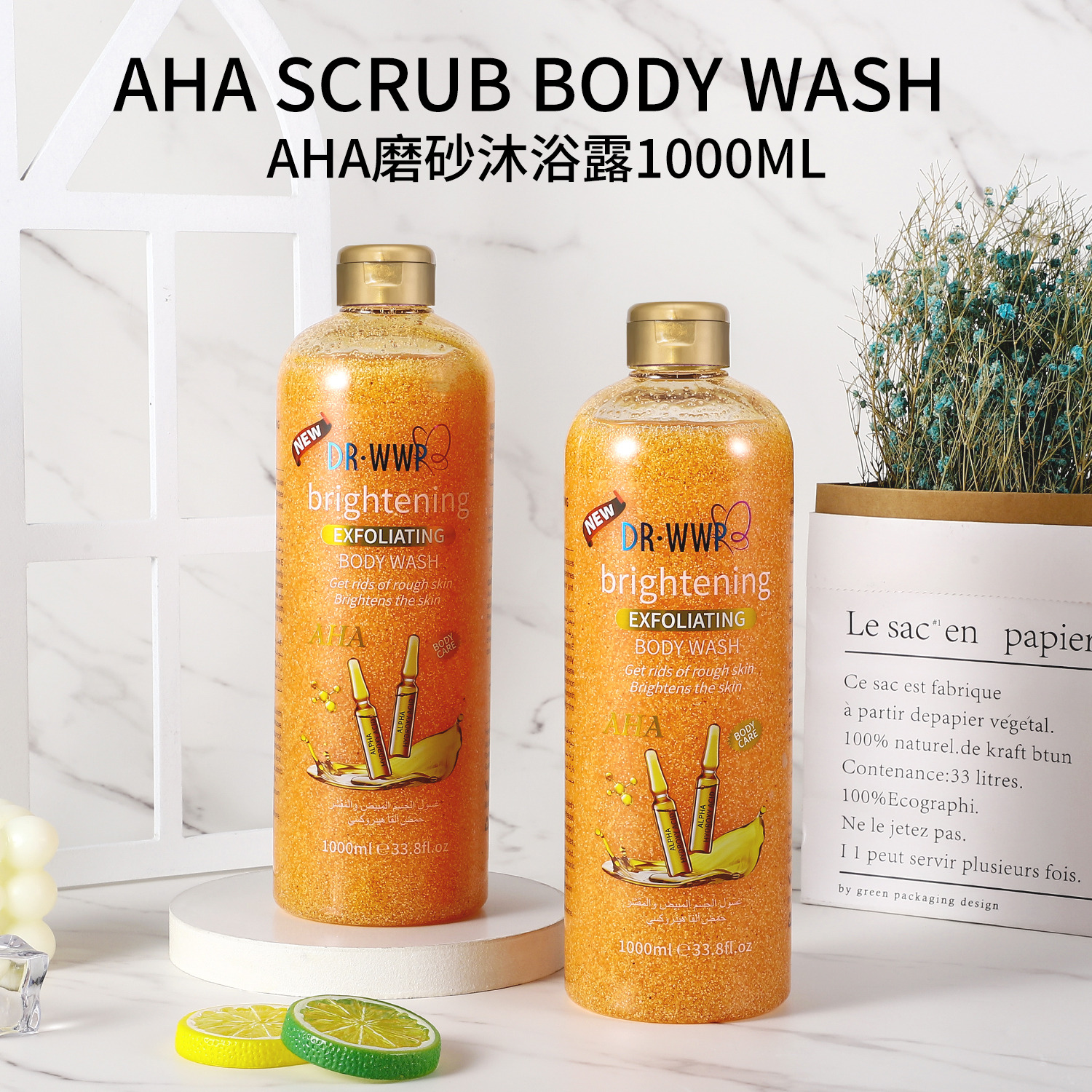 Exfoliating Body Wash 1000ml, Factory Direct OEM/ODM Private Label Customizable Shower Gel
